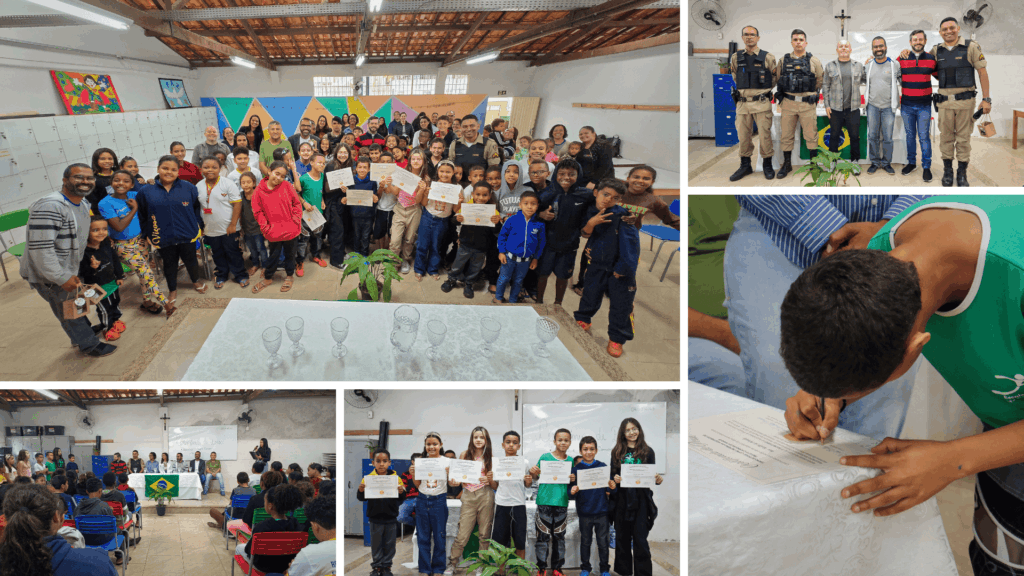 Durante a posse, recebemos convidados especiais que vieram prestigiar esse momento e incentivar nossas crianças a seguirem firmes nesse caminho de diálogo. Estiveram presentes famílias, representantes da Polícia Militar de Minas Gerais, membros do Poder Legislativo, representantes de entidades do terceiro setor e o Padre Geraldo, diretor espiritual da Fraternidade Pequena Via, entre outros, que contribuíram para tornar a ocasião ainda mais significativa.